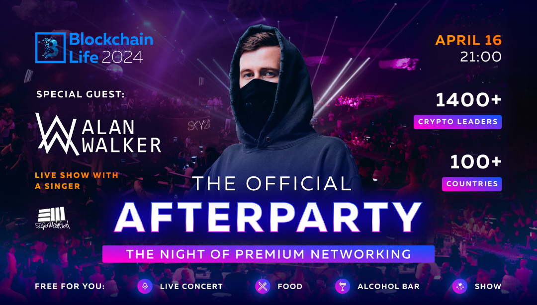Blockchain Life 2024, the premier global event on cryptocurrencies, web3 and mining, is excited to announce that world-renowned musician Alan Walker will be headlining the official Afterparty.